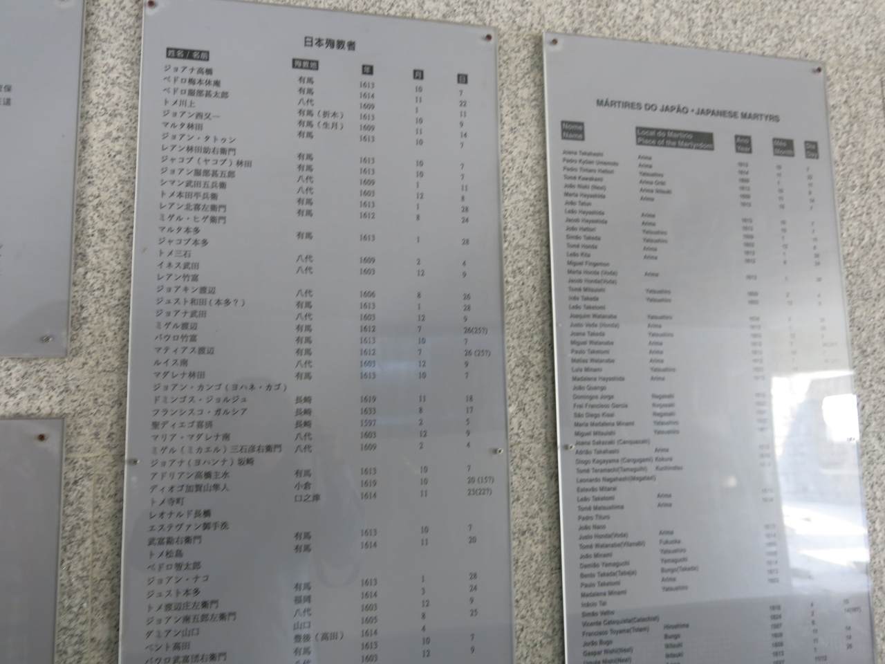 天主堂の地下にある納骨堂には、外国人としては最も多い人数の日本人が眠っているそうです。彼らは戦国時代以降、キリスト教弾圧が激しくなった日本を逃れ、マカオまでたどり着いたそうです。天主堂建設には彼らの貢献が大きかったようで、今日でもその功績を讃えられています。一人一人のお名前が刻まれているので、自分のルーツが見つかるかも。