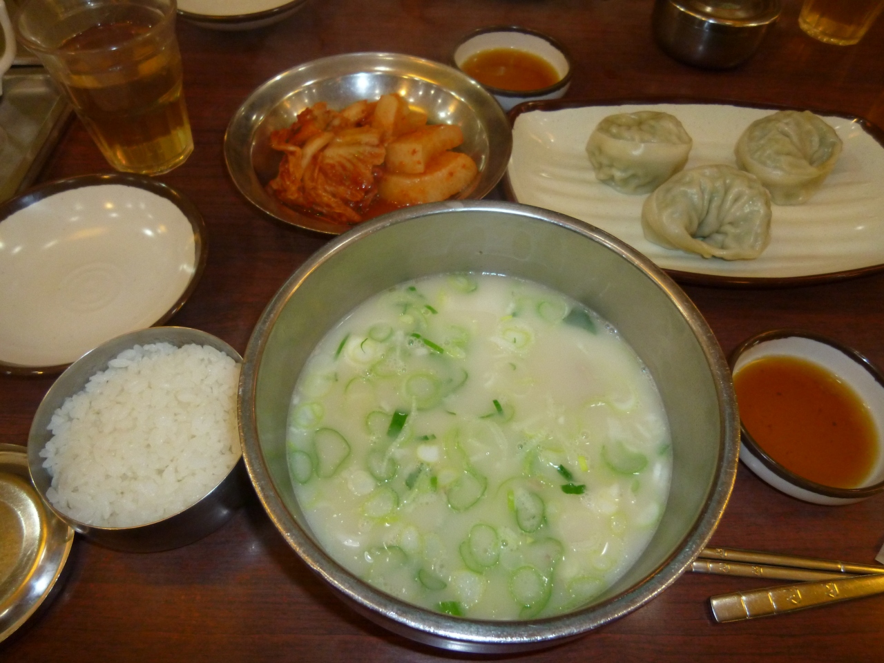 友人のすすめでぜひいきたかったソルロンタン屋さんへ。宿泊したロッテホテルソウルから徒歩で5分位です。朝食にしました。前日の朝ご飯ではお気に入りのお粥やさんに行ったのですがそのお粥やさんと同じビルの1fにありました。前日行列してたお店でしたた、この日は帰国する日で朝早かったので行列は免れました。。ソルロンタンとマンドウを注文。ソルロンタンはよいお出汁がでて美味ではありますが、なんとなくものたりない気がする。。と母と話していたところ、となりに座ったたぶんツアーガイドさんが、どのテーブルにも置いてある食べ放題?のキムチをたっぷり入れて食べているのを見て、真似てみました。うん美味。キムチをたっぷり入れて食べるのがおすすめです。