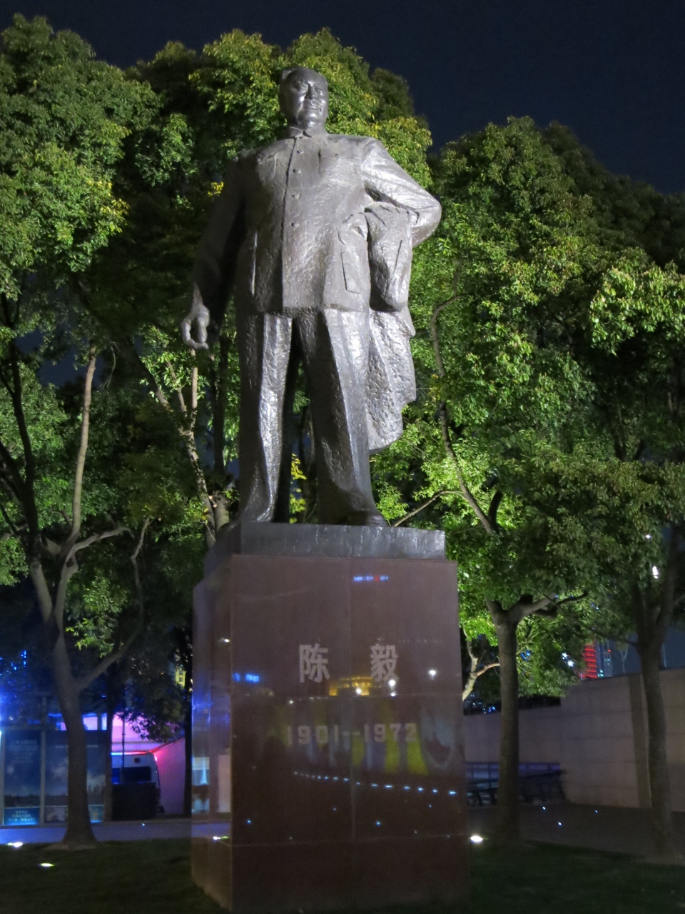 上海 外灘のフェアモントピースホテルの前、黄浦公園入口辺りに上海の初代市長の陳毅の銅像が建っています。陳毅は四川出身の軍人で抗日、解放戦で活躍し、中華人民共和国成立後、1949年に初代上海市長となり市民の支持を得た。銅像はランドマークにもなっています。