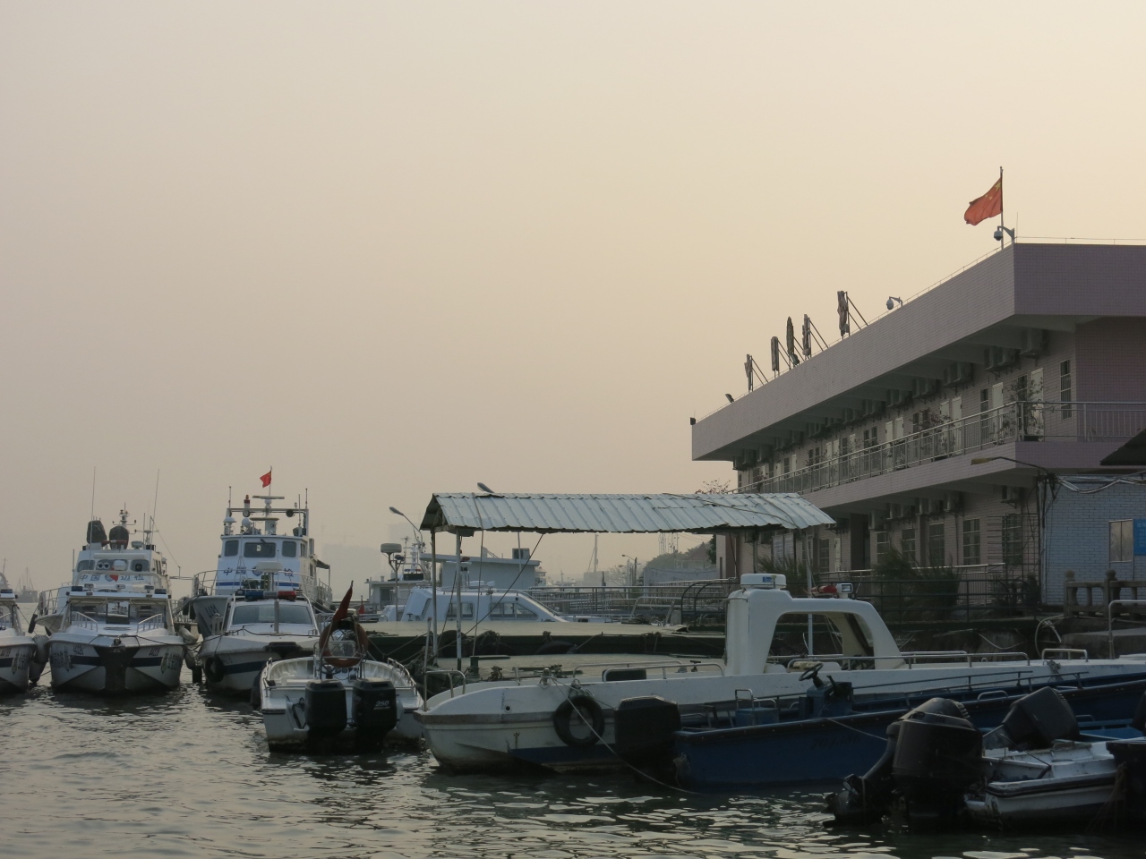 対岸のマカオ内港フェリーターミナルから出た渡し舟は、5分ほどの船旅を経て、湾仔口岸へ到着します。外国人の入境にはアライバルカードが必要なので、あらかじめ記入しておきましょう。ここから海鮮市場へは歩いてすぐ。銀行が近くに複数あるので、両替も可能です。