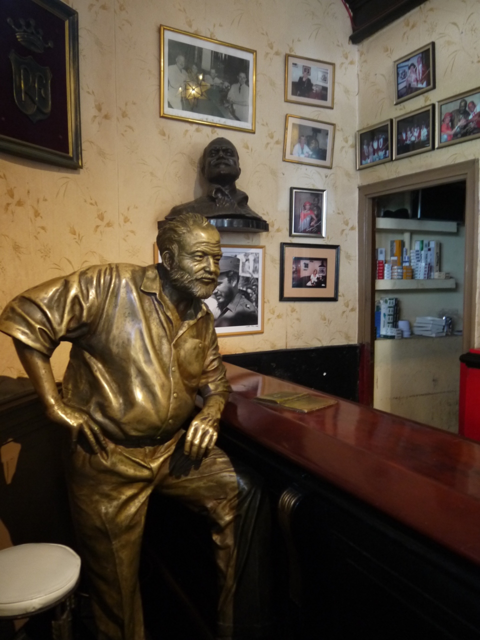 たまたまカウンター席があいていたうえ、ヘミングウェイ像の隣の席が空いた瞬間だったので、ヘミングウェイ像を入れた良い写真が撮れました。