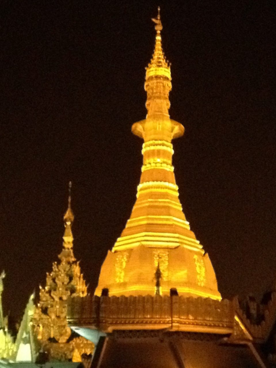 ヤンゴン市内の大通りにあるバゴダです。大きな塔が金色に光っていて、かなり目立ちます。中には、仏像様がたきさん陳列されており、夜はカラフルな電飾で照らされており、かなりシュールでした。昼も良いですが、夜に見学しても面白いです。