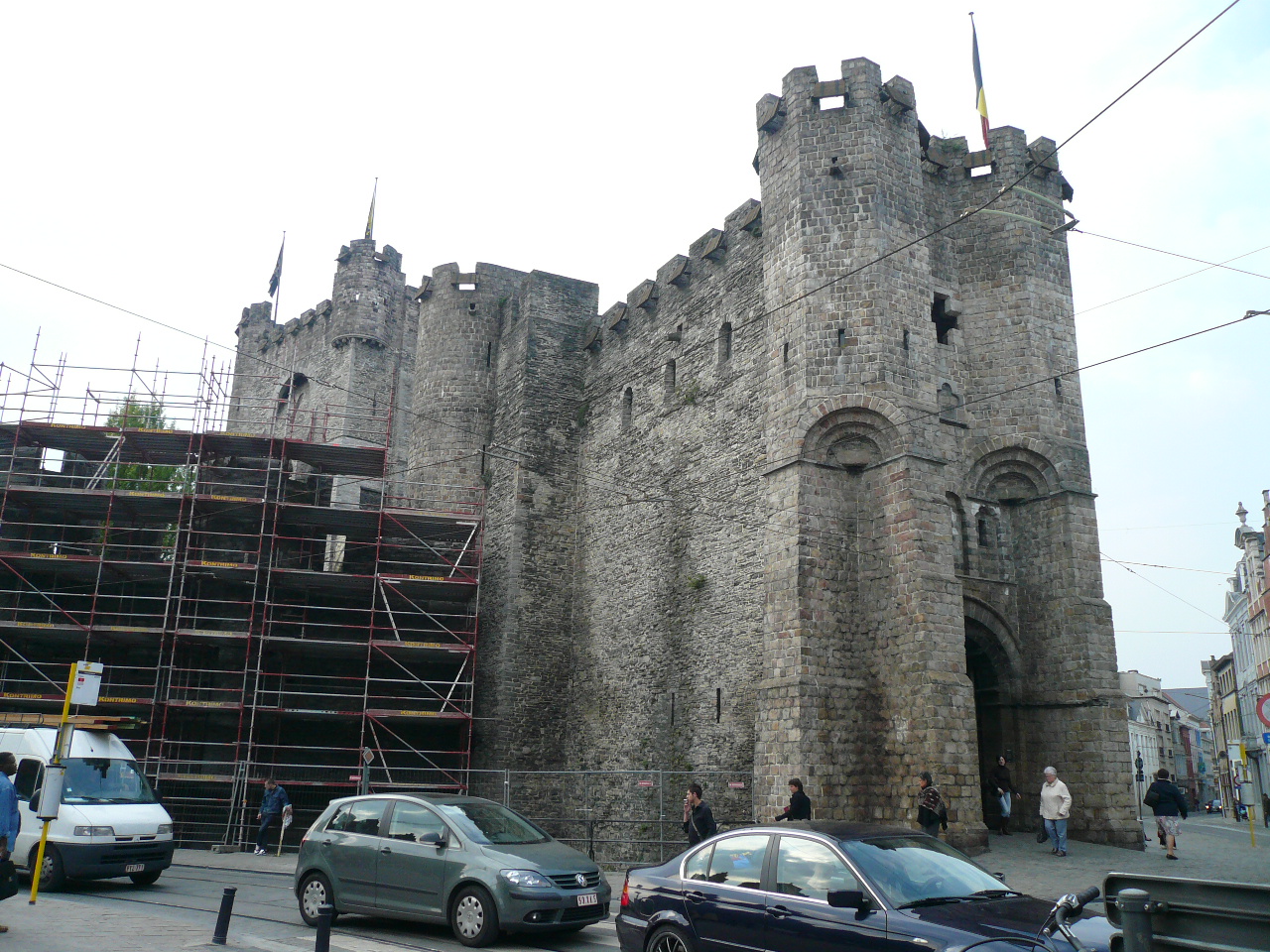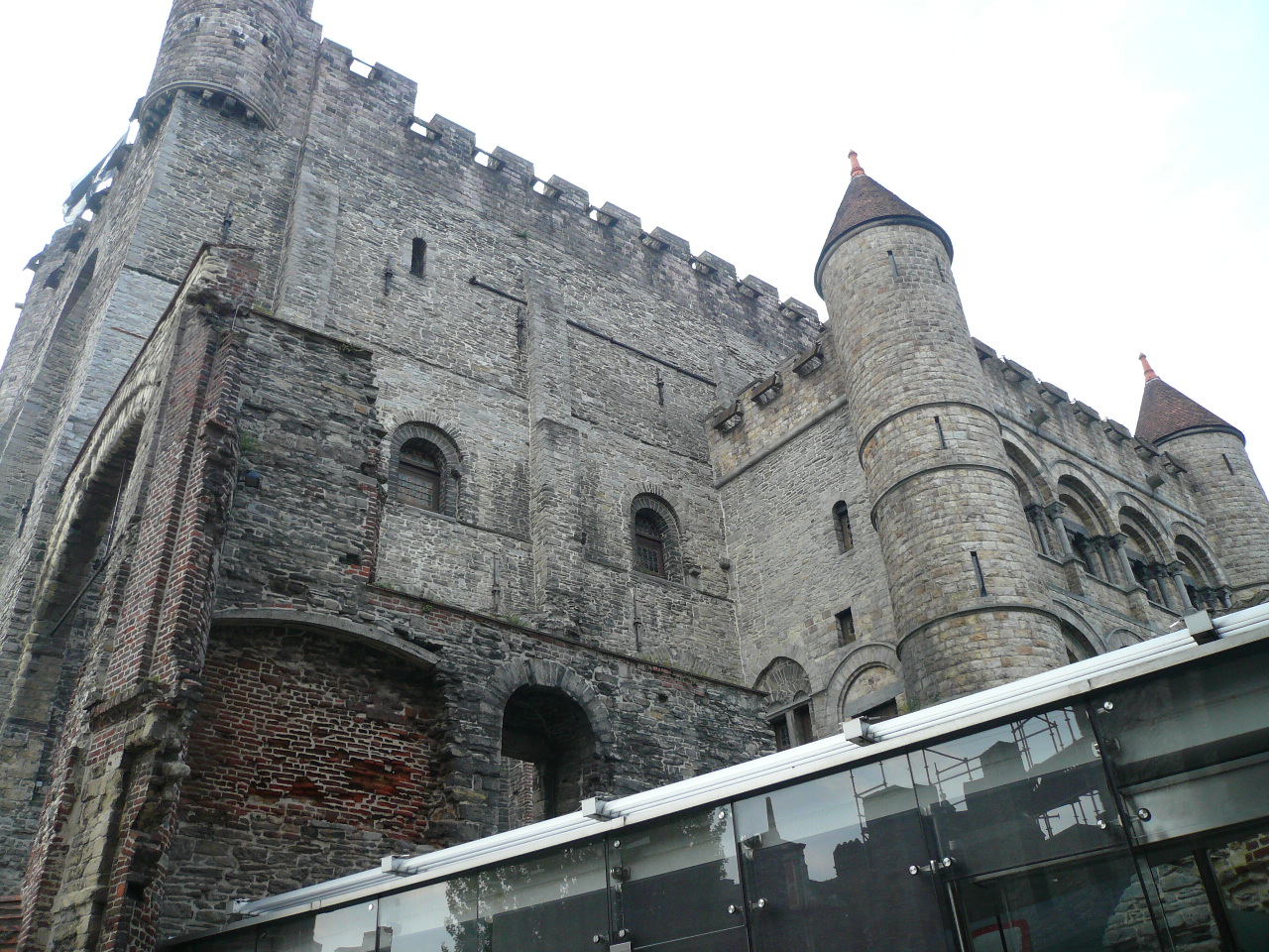 ゲント旧市街にある市庁舎から西北方向に歩くと大肉市場があり、そのそばにレイエ川が流れていますので、その橋を渡るとすぐ見えてきます。