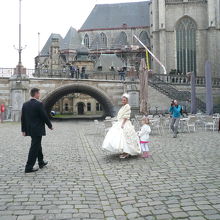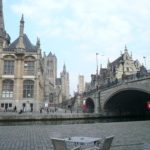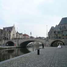 ゲント旧市街を流れるレイエ川にかかっている石造りのアーチになった橋です。