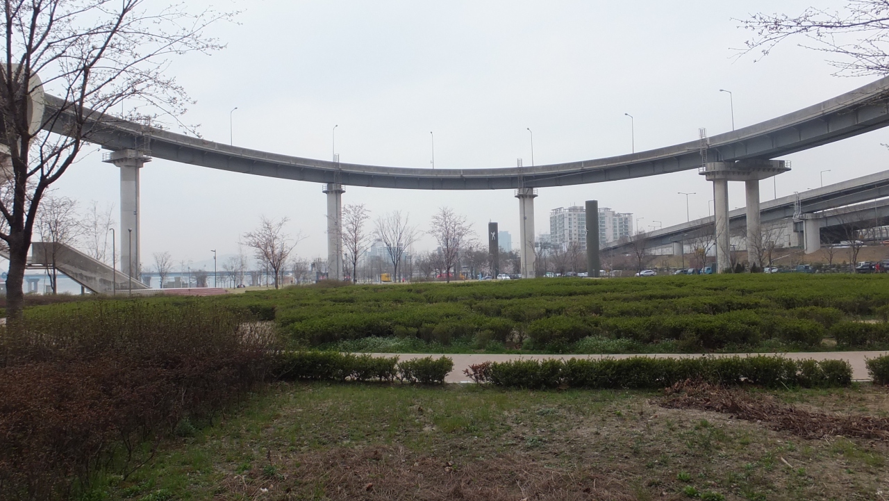 トンネルのような通路には写真が飾られていたり、所々窓のように外が見えるようにもなっていて、カフェや韓国料理レストラン、コンビニなどの売店もあるそうです。