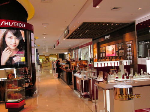 百盛PARKSON(パークソン) 上海市淮海中路918号、地下鉄1、10号線「陝西南路」駅に地下売り場が直結しています。徒歩約1分。最近斜め向かいに大きなショッピングセンター上海の環貿iapm商場や淮海中路にユニクロのグローバル旗艦店、K11等が次々にオープン対抗上リニューアルを実施するがあまり変わり映えしていません。化粧品売り場のラインナップを豊富にしたそうですが。ショッピングセンターの競争が激化するでしょう。
