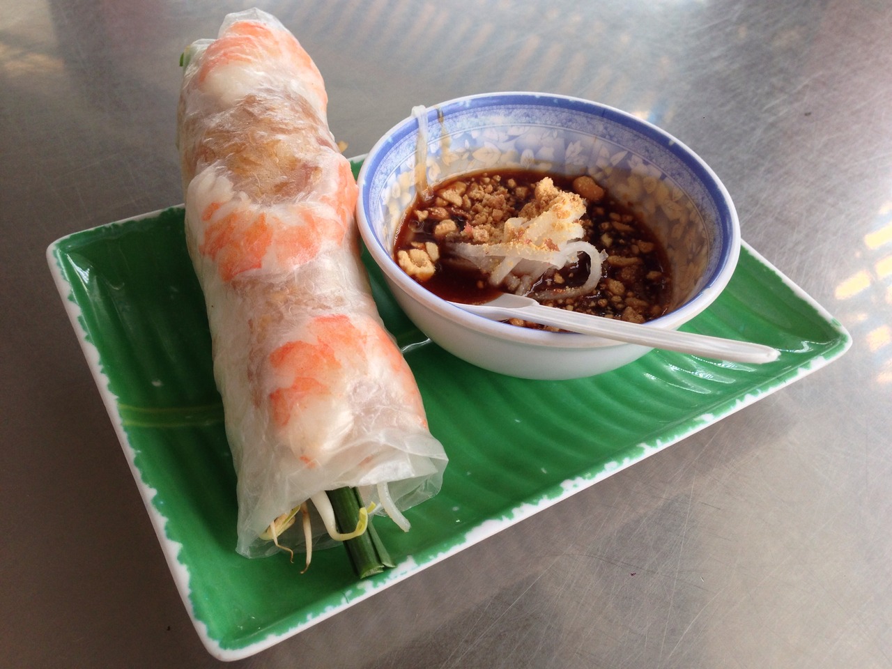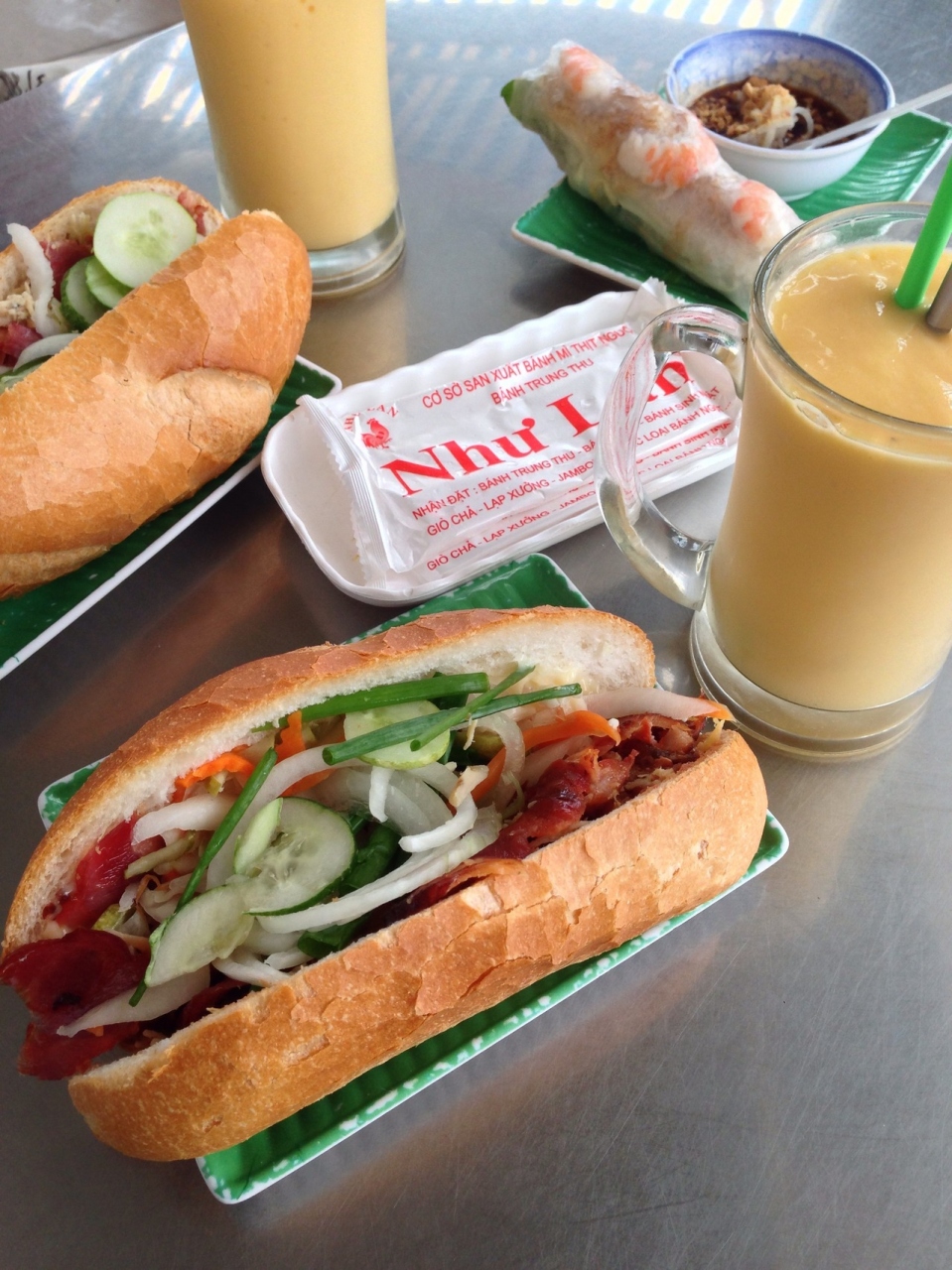 バインミーで有名なニューランにやってきました。牛肉のバインミー、25000ドン。オレンジとマンゴーのシントー20000ドン、生春巻き15000ドン。日本円で約125円、100円、150円。バインミーは、パンと具材の相性がバッチリでとても美味しいです。フランスパンの硬さが全然感じられませんでした。オレンジとマンゴーのシントーはジューシー、南国に合いますね。生春巻きは優しい食感でとても美味しく、何本でも食べられそうです。