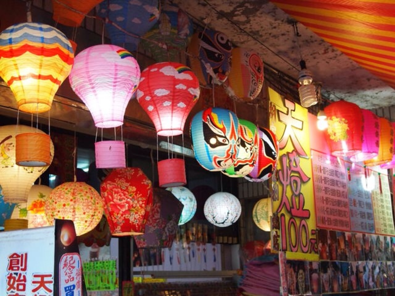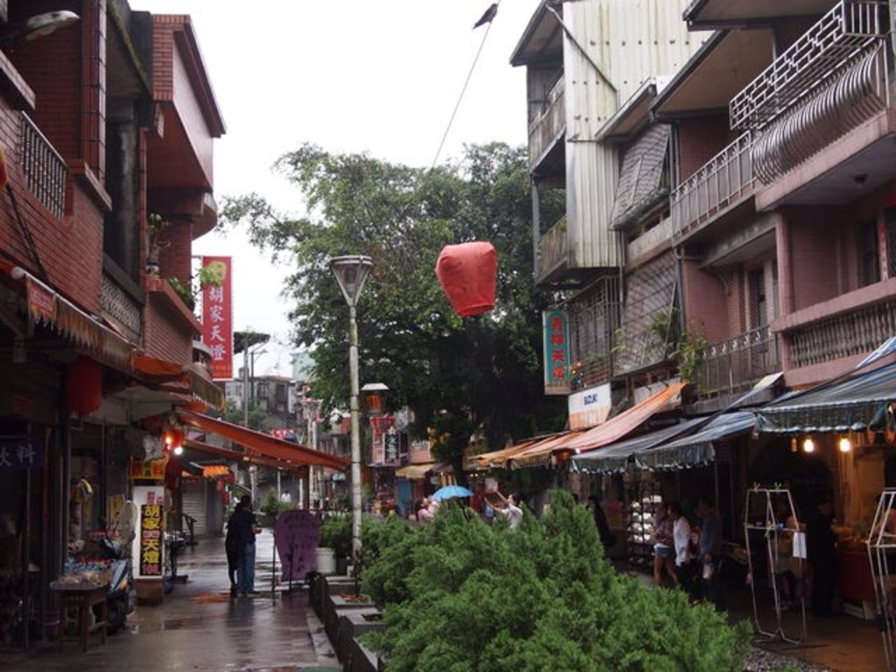九份程知られていませんが、天燈を上げれることを知り楽しみにしていた十分。平渓線の線路沿いには天燈のお店が何ヶ所もあり、左手奥のお店で上げることにしました。店先には沢山のお土産用の天燈も置いています。