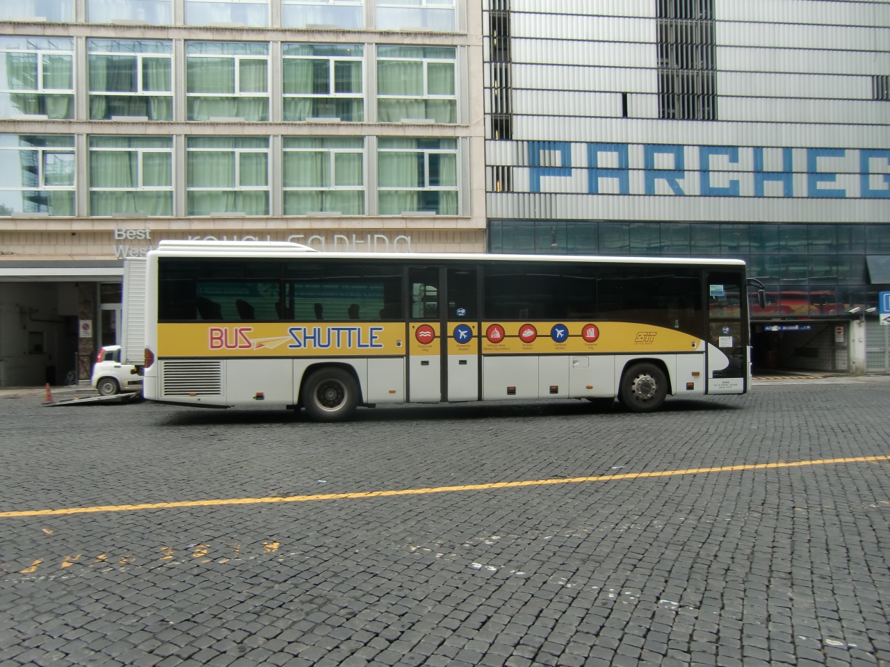 テルミニ駅からフィウミチーノ空港まで、バスで移動しました。乗り場はテルミニ駅の裏手の方にあるので少しわかりにくいですが、バス停で待っていてフィウミチーノ空港行きのバスが来たら、その場で料金を支払って、スーツケースをバスの荷物入れに入れてしまえばOKなので、ラクチンです。乗車時間は1時間程度ですが、料金は6ユーロとリーズナブルでした。料金を考えれば、シートも十分満足できるレベルでした。時間の余裕さえあれば、電車よりラクチンかも?