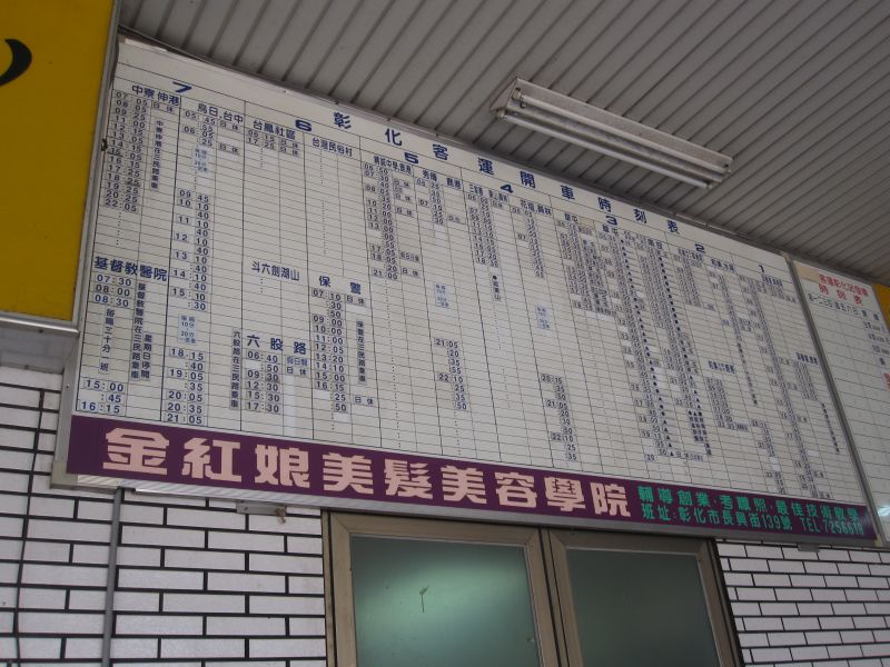 鹿港側のターミナルは、天后廟の近くにありますが、目抜き通りを通過しますので、その辺のバス停から乗っても、彰化駅前のターミナルまで連れていてもらえますが、そのうちいくつかは台中駅まで運転しているようです。
