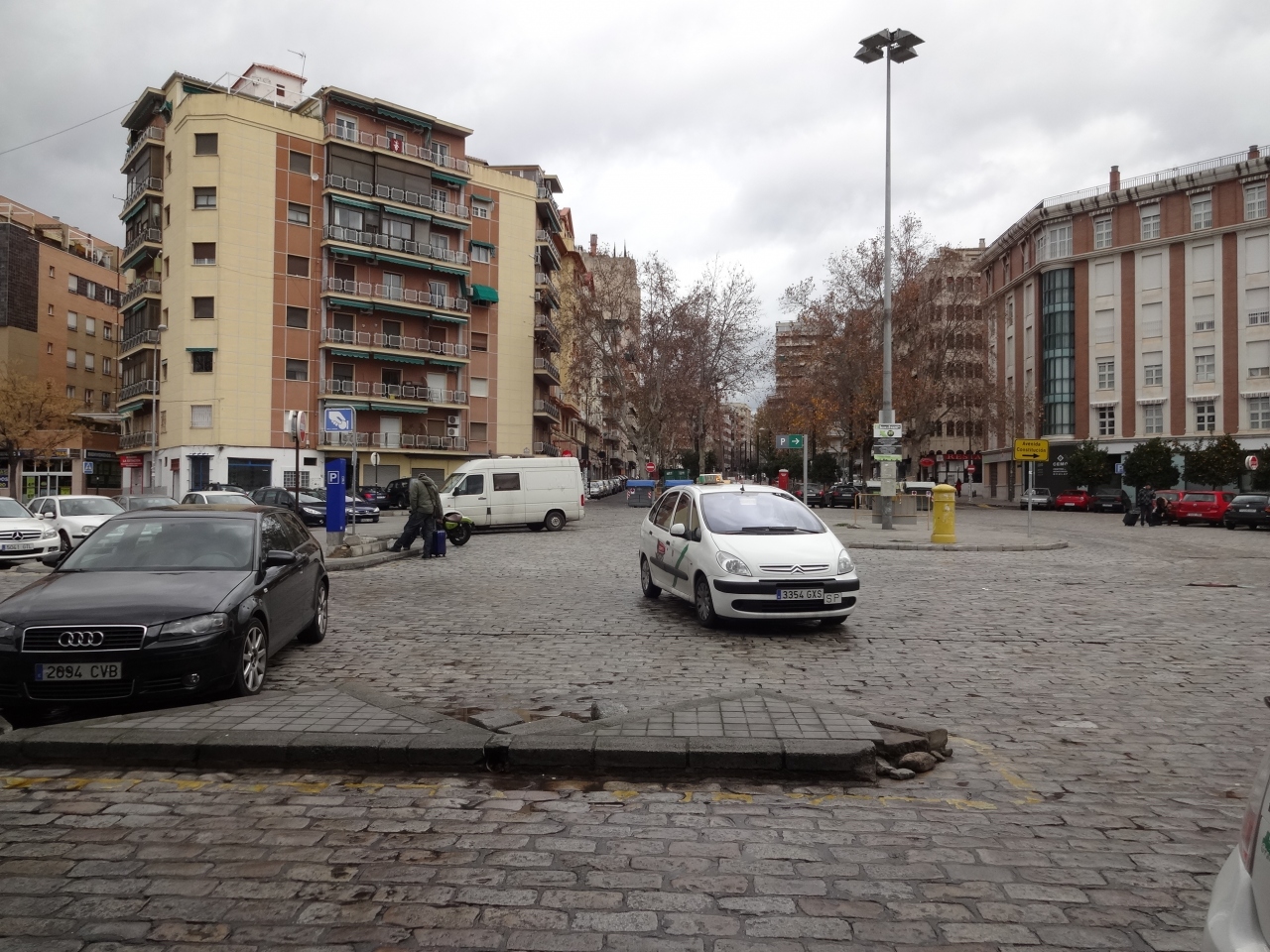 グラナダ一の大通りグラン・ビア・デ・コロンの、駅側の突き当たりにあるラウンドアバウトには常に客待ちのタクシーが何台も停まっていました。