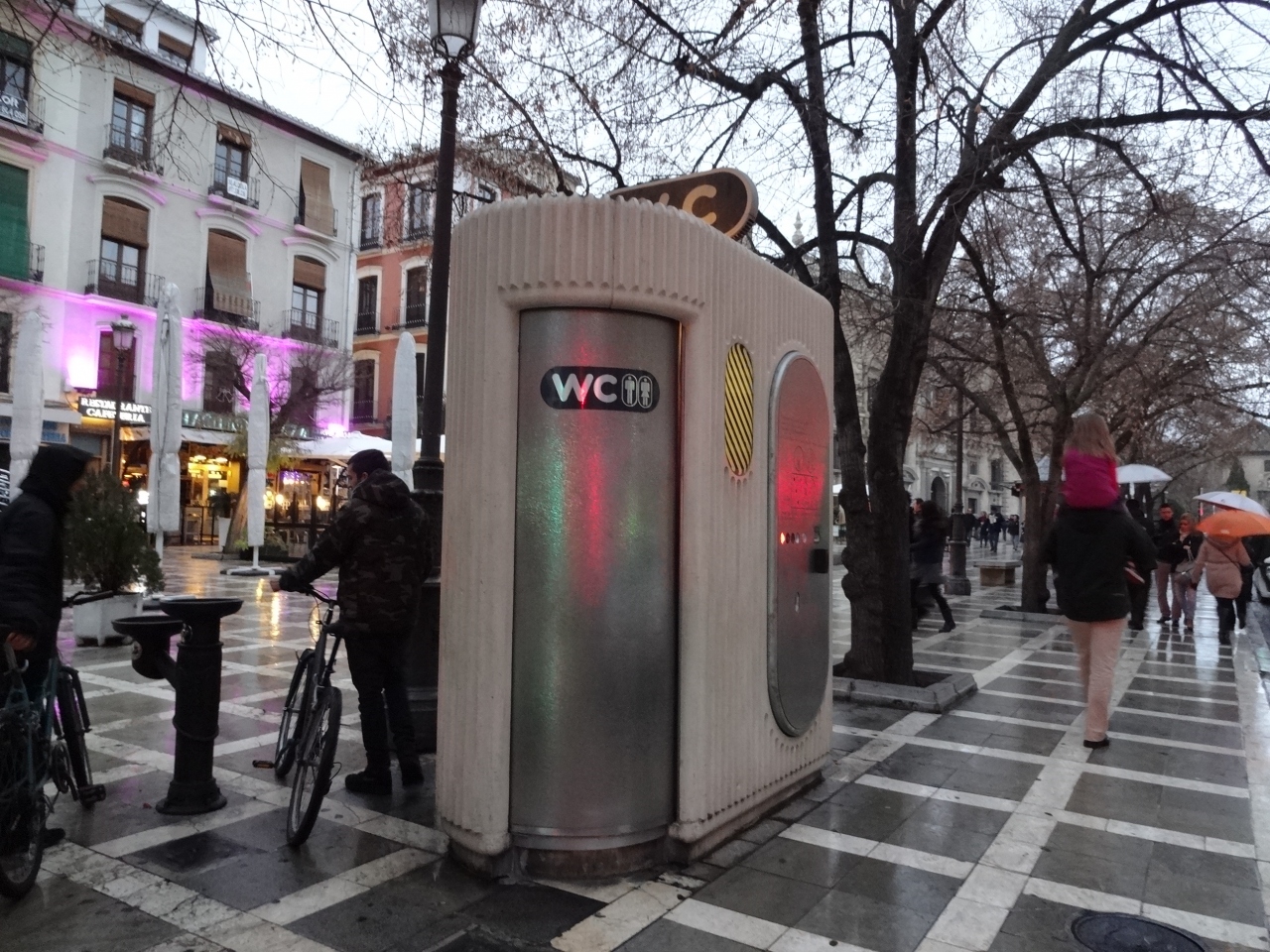 この広場で発見したトイレは、スペイン滞在中に唯一見た有料トイレでした。使用料はどこに書いてあるのか分からなかったので不明。
