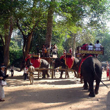 アンコール・トム南大門前からバイヨンまでのエレファント・ライドが最長。