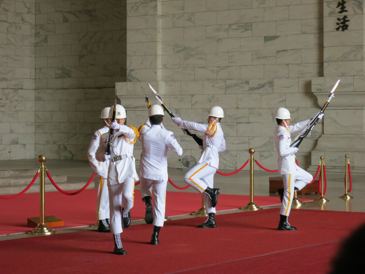 巨大な蒋介石像の前で行われる交替式は迫力満点です♪