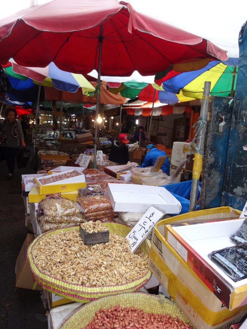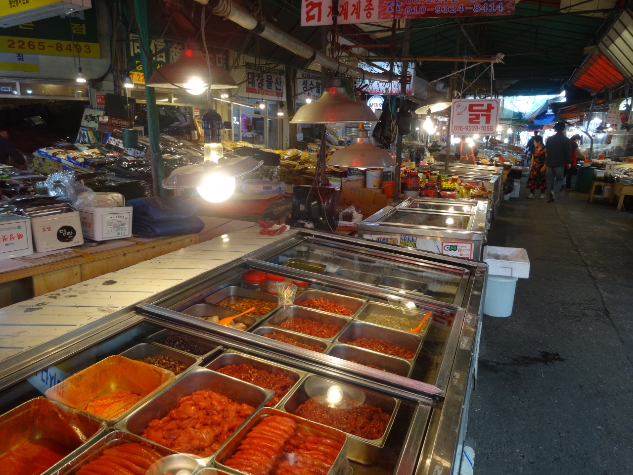 地下鉄乙支路4街7出口からすぐの在来市場。主に干物、乾物、野菜などが種類豊富にならびます。 どの店も試食勧誘してくれたり気さくな市場です。