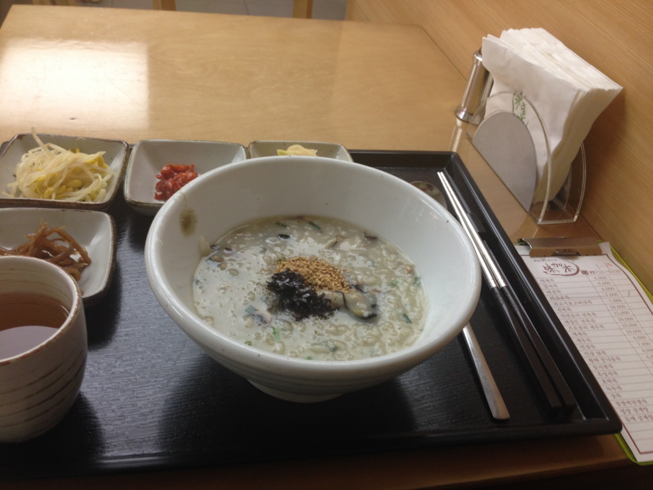 牛肉のお粥を頼んだのですが、かきのお粥がでてきました。