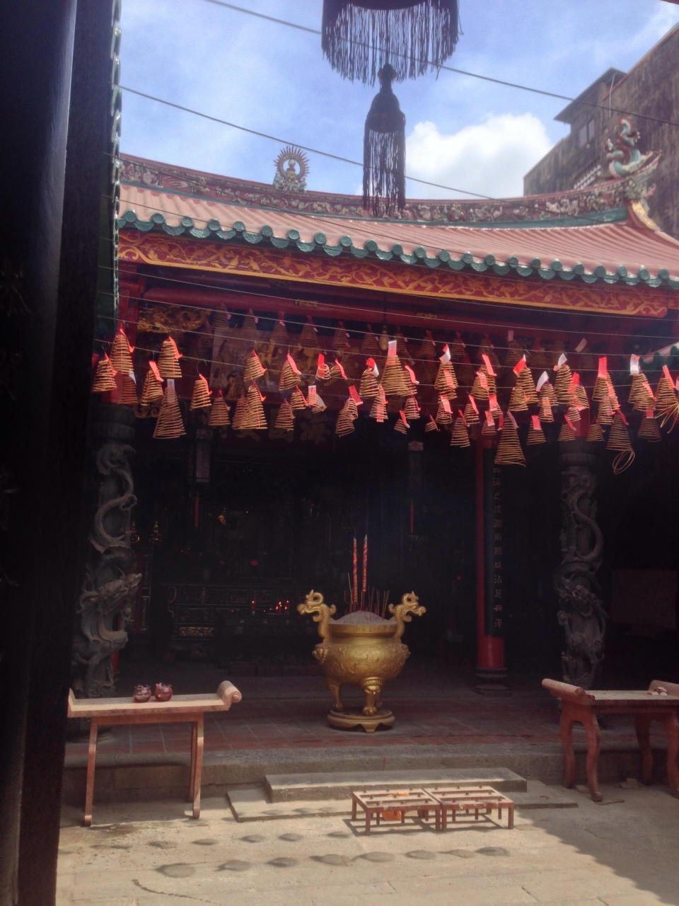 航海の安全を祈願するお寺です。マカオにもある媽祖を祀ったお寺です。ティエンハウ廟へ行く途中になりますので、寄ってみてください。ここにも天井から吊り下がったぐるぐるのお線香があります。チョロンはチャイナタウンですね、一気に中国気分になります。