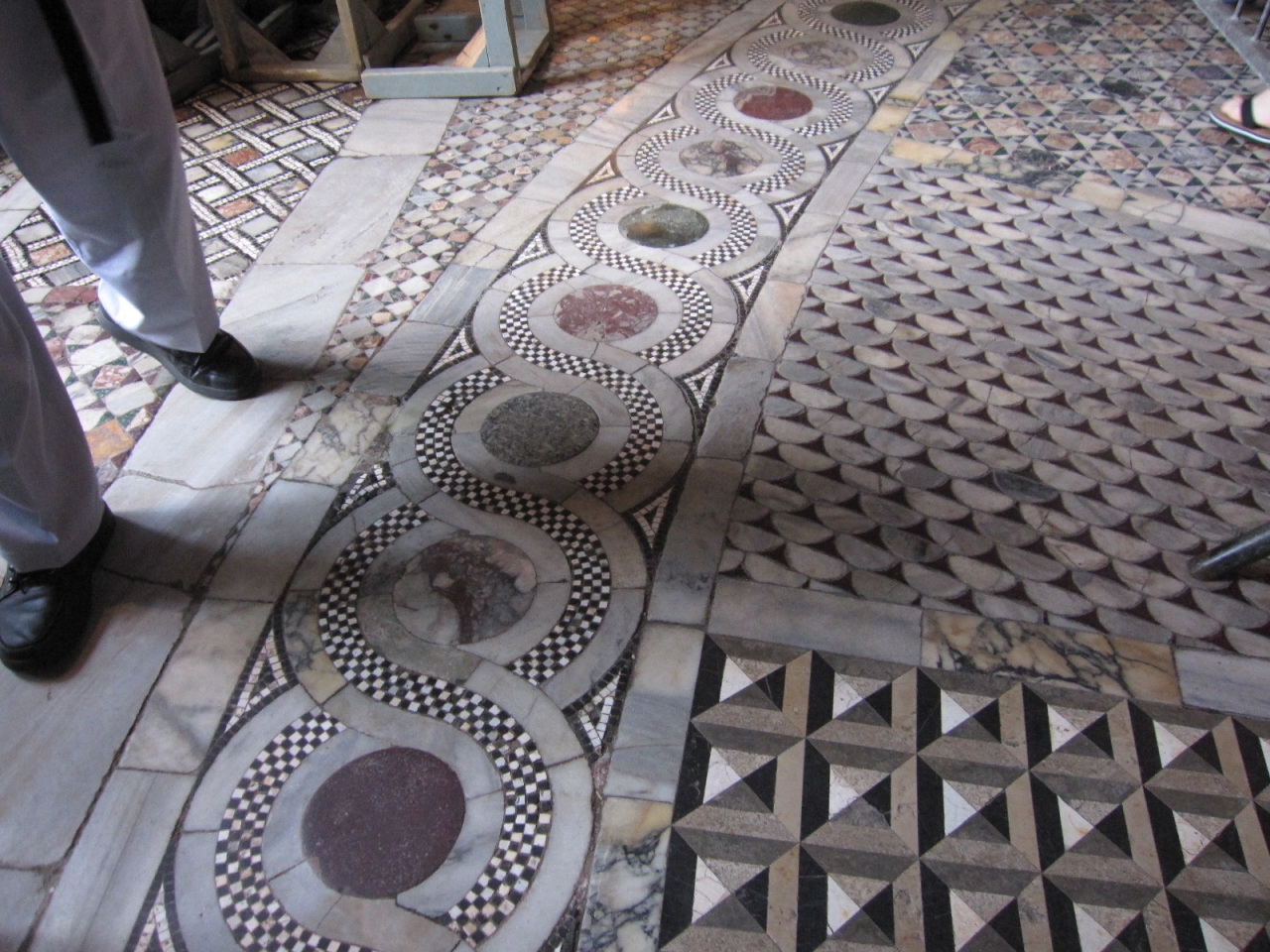 床と天井のモザイクの素晴らしさに