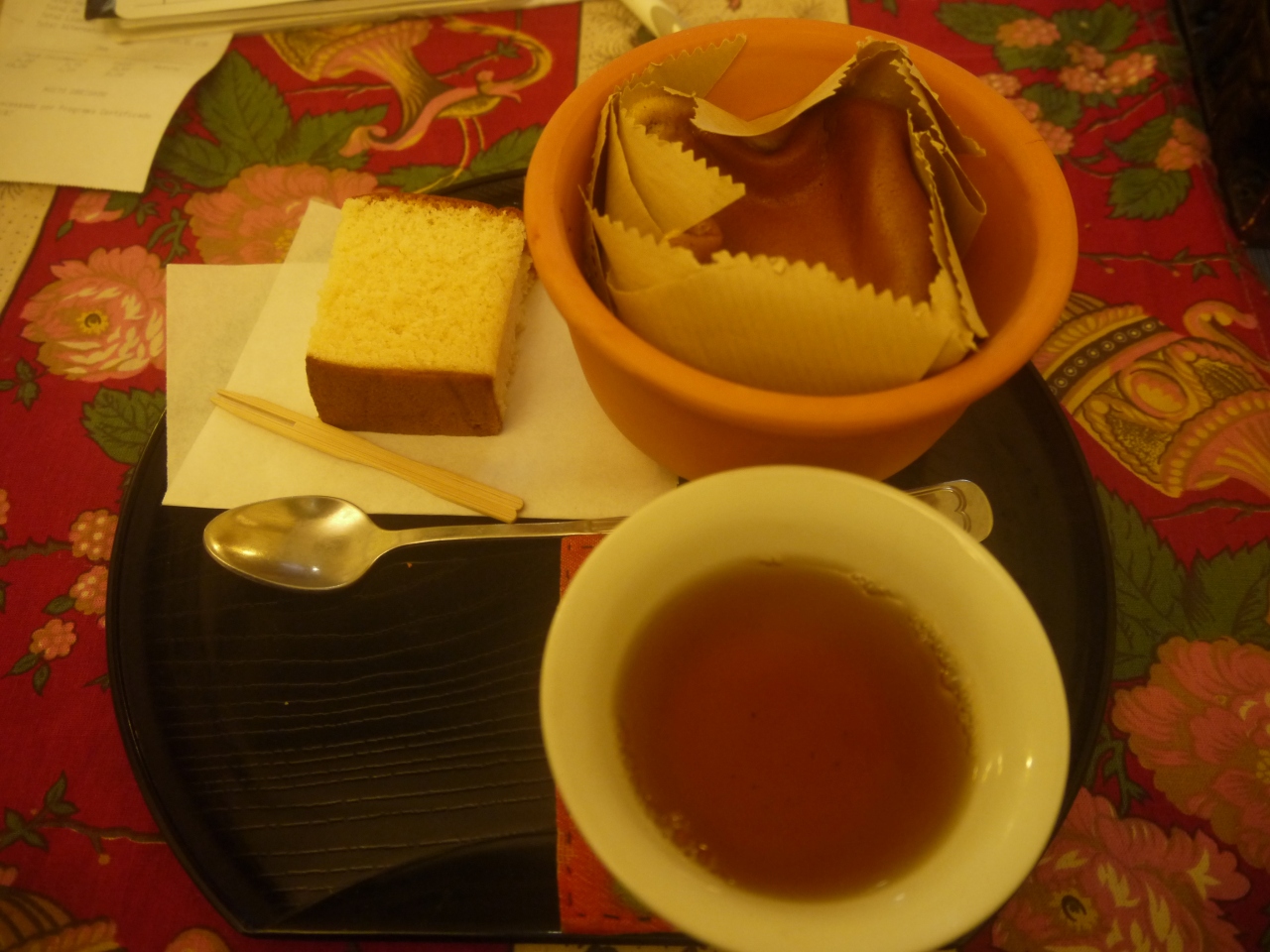 異文化体験セットを注文しましたが、半熟カステラと日本式カステラと日本茶のセットで3ユーロはとってもお得だと思います。