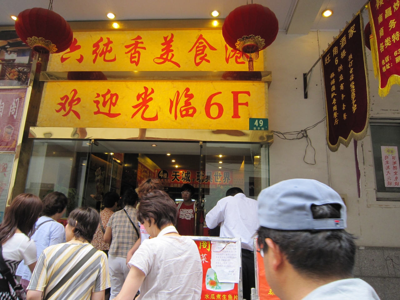 豫園周辺に広がる一大ショッピング&グルメスポット、豫園商城。明清時代の建物風格を模した雄大な商業ビルが建ち並ぶレトロな通りで、どの建物も特徴的なとんがり屋根。下町風情漂う街の中には、狭い道を挟んで大小のショップがひしめいており、あまりにも人出が多いので時々日本人の迷子が出るそうです。われわれのツアーでも一人出て1時間後に見つかりました。