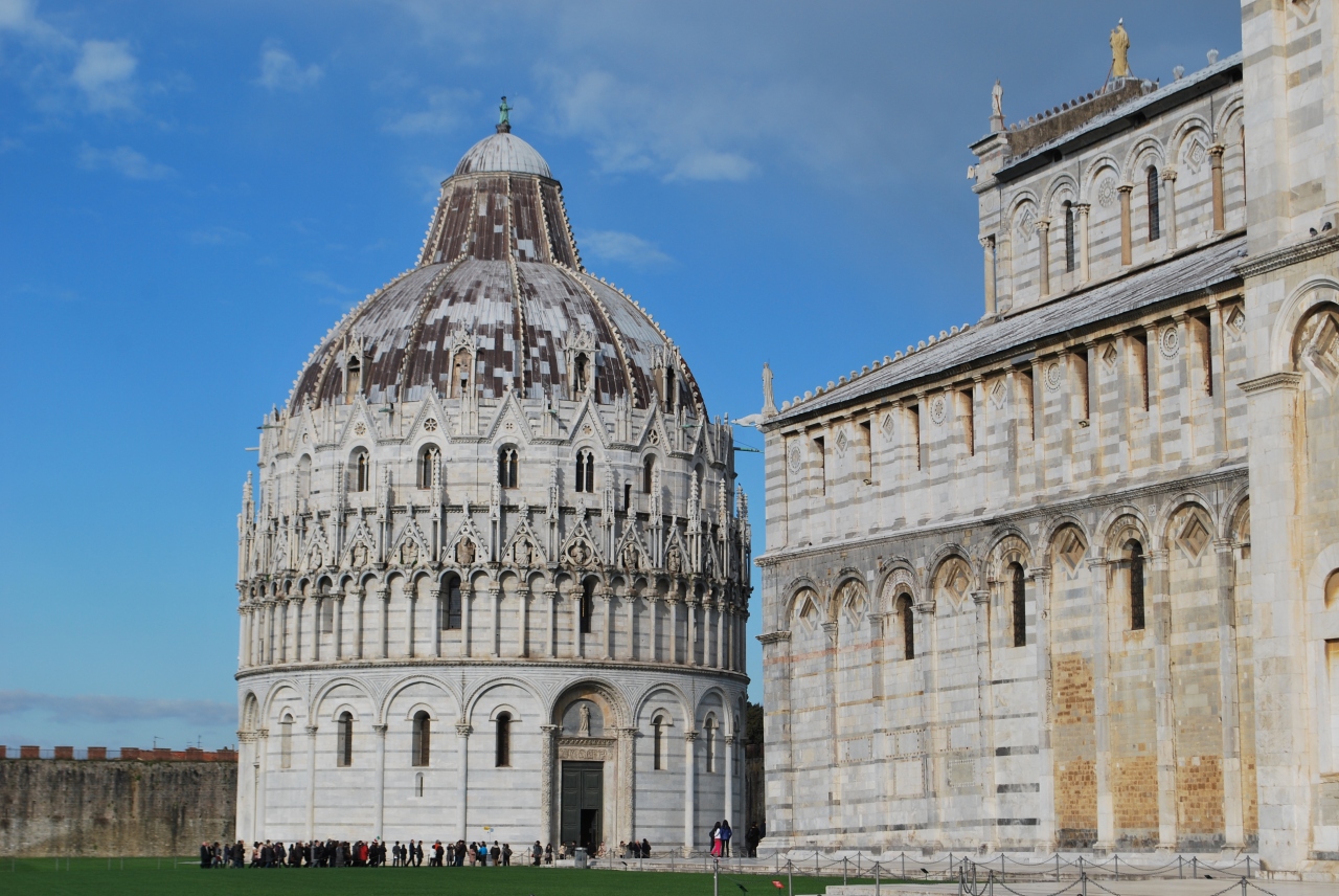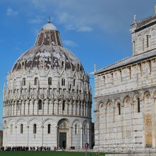 12世紀半ばから14世紀にかけて建造されたピサ大聖堂に付属する円筒形の洗礼堂です。