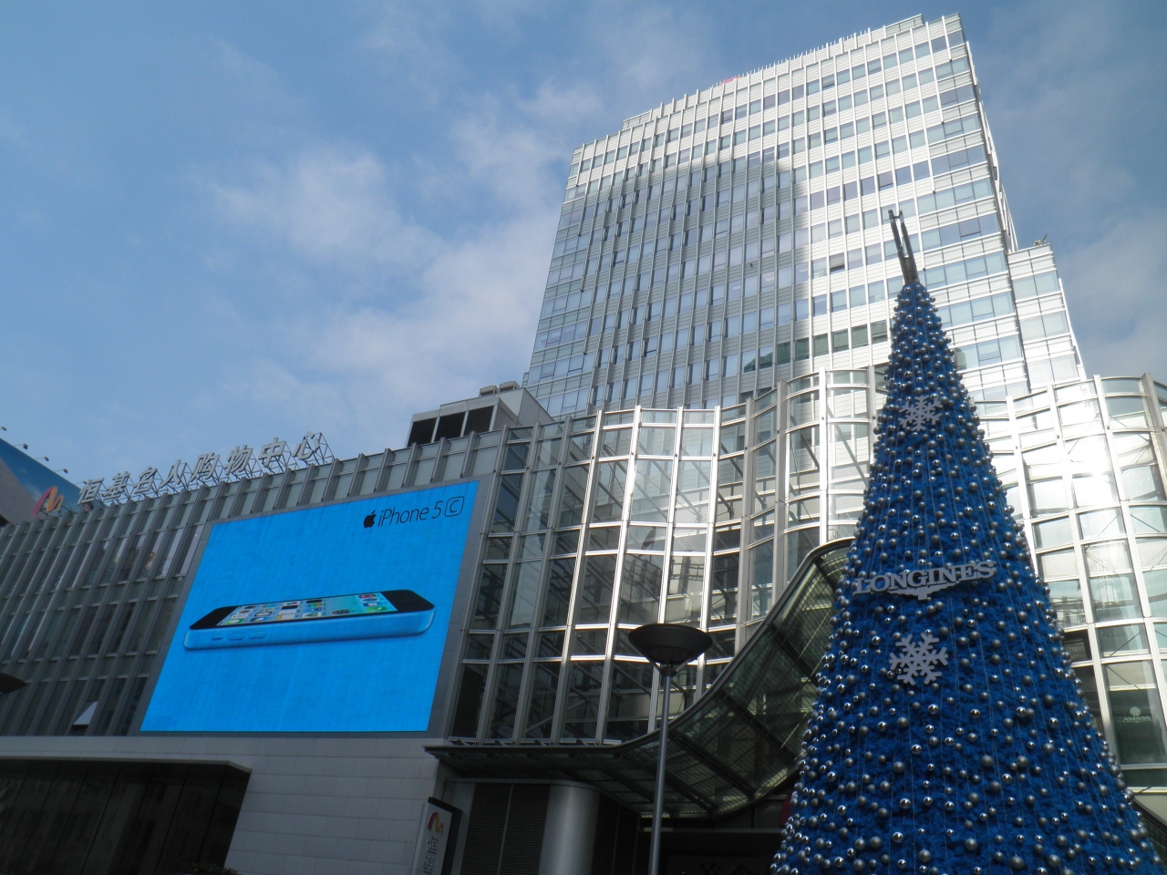 恒基名人購物中心は、まだ新しいせいか、上海のショッピング街の中でも垢抜けた感じでした。 年末だったので多くの買い物客が訪れていました。 飾りもきれいで見応えありました。