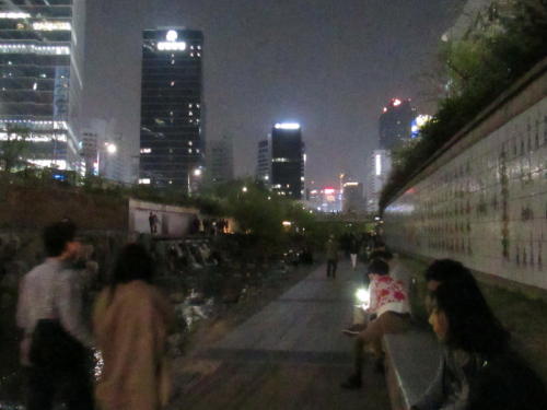 桜は散ってしまいましたが清渓川の春の宵はカップルの花が満開です。