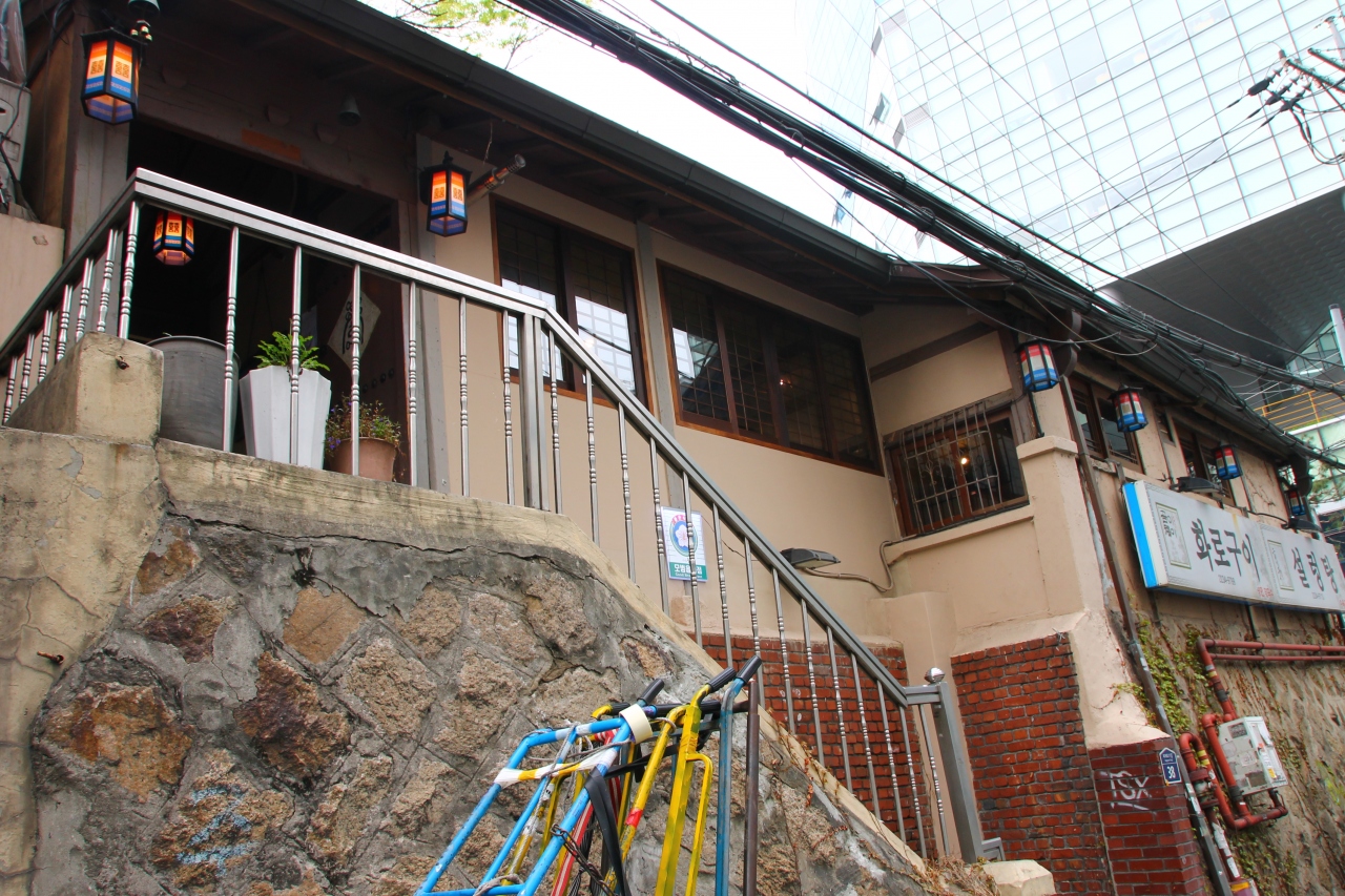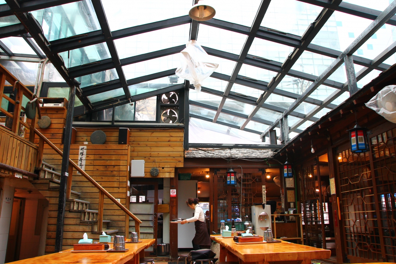 東大門歴史文化公園のすぐ西にあるソルロンタンを中心とした牛肉料理の店です。建物は韓屋の伝統家屋で、店に入ると天井がガラス張りになっており、店の奥では大釜からもくもくと湯気が立ち上っており、雰囲気抜群です。ソルロンタン(小)8000W(800円)をたのみましたが、白濁したいかにも濃厚なスープなのですが、スープ、牛肉とも味はしつこくなく思いのほかさっぱりしており、相当丁寧に下ごしらえをしていると思われます。スープには太いそうめんのような麺が入っているのですが、ずるずるの柔らかさです。それ以外は完璧です。量は普通です。昼食、夕食や男の人は(特)11000W(1100円)がいいかもしれません。