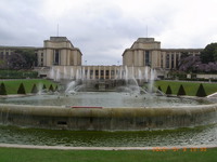 シャイヨー宮はシャイヨーの丘に建てられた湾曲した双翼の形をした宮殿で、いまは国立海軍博物館や人類博物館、国立フランス文化財博物館など総合文化施設となっている。庭園にはブロンズ像や噴水が配され、憩いの場所となっているが、ここのテラスから見るエッフェルの眺めは抜群!エッフェル塔が真正面に見えるベストフォトショットだ。