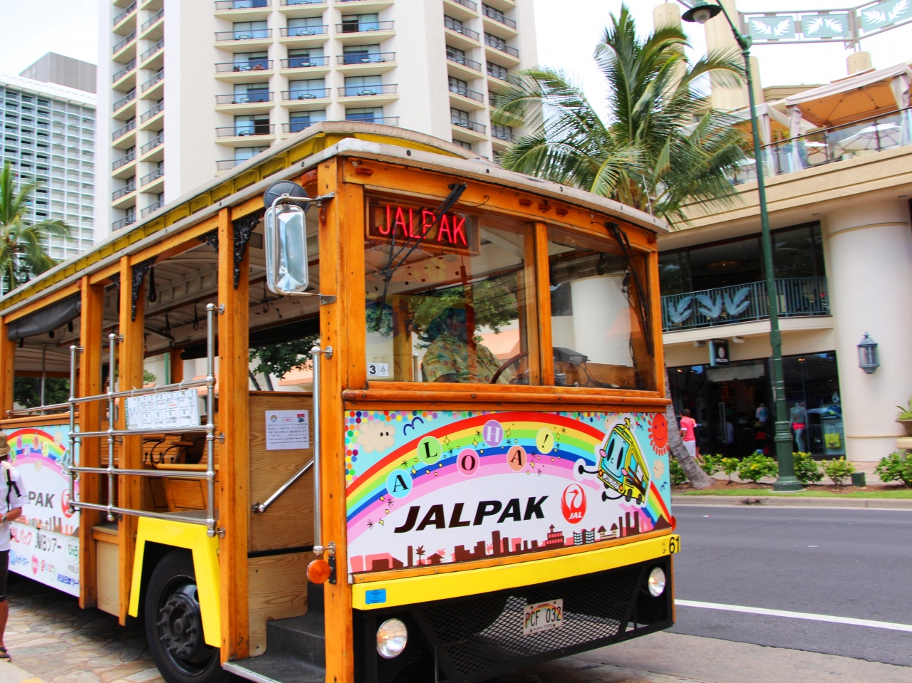ワイキキの町の中を移動するのに便利なのはトロリーバス。