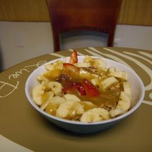 アサイボール発祥の店という事もあり、アサイボールを注文。酸味が弱くて、甘ーーぃ印象。イチゴとバナナの超シンプルなアサイボール、スモールサイズでも結構な量ありました。
