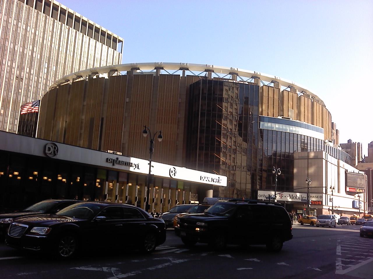 地下鉄の34ストリート ペンシルバニア駅で降り、ワシントンへ移動するバスの停留所へ行こうとして、地下鉄駅から地上に出ると、目の前にマディソン・スクエアー・ガーデンの建物がありました。よって、外観のみ鑑賞してきました。アメリカンフットボールの聖地ですから。