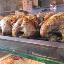 店舗で焼いているローストチキンもこんがりおいしい。
