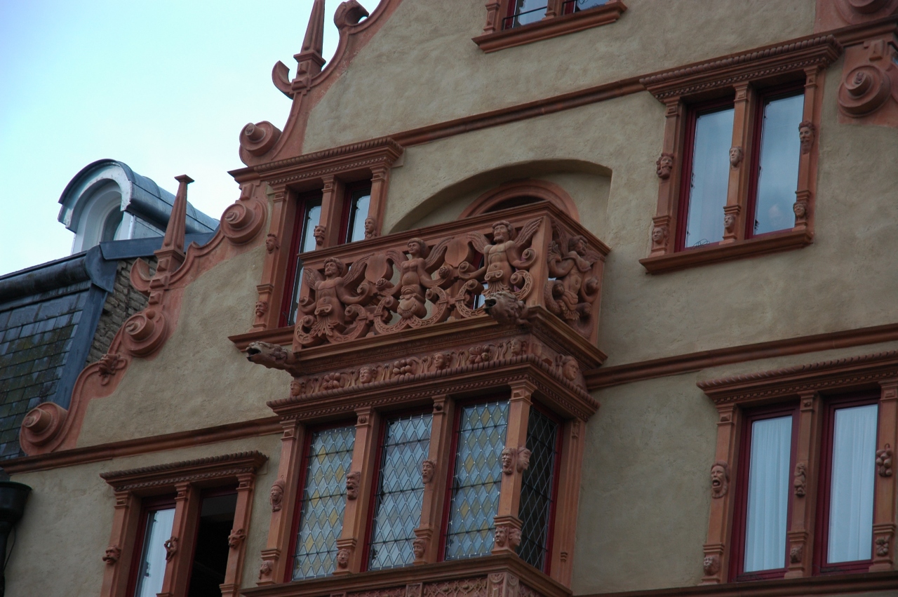 頭の家は1609年にできたルネッサンス様式の建築物。奇妙な名前の由来は正面ファサードに施された111のグロテスクな小さな顔彫刻からついたそうだ。よーく見ると笑ったり怒ったりした表情が様々であった。何故このような建築物を造ったのか。