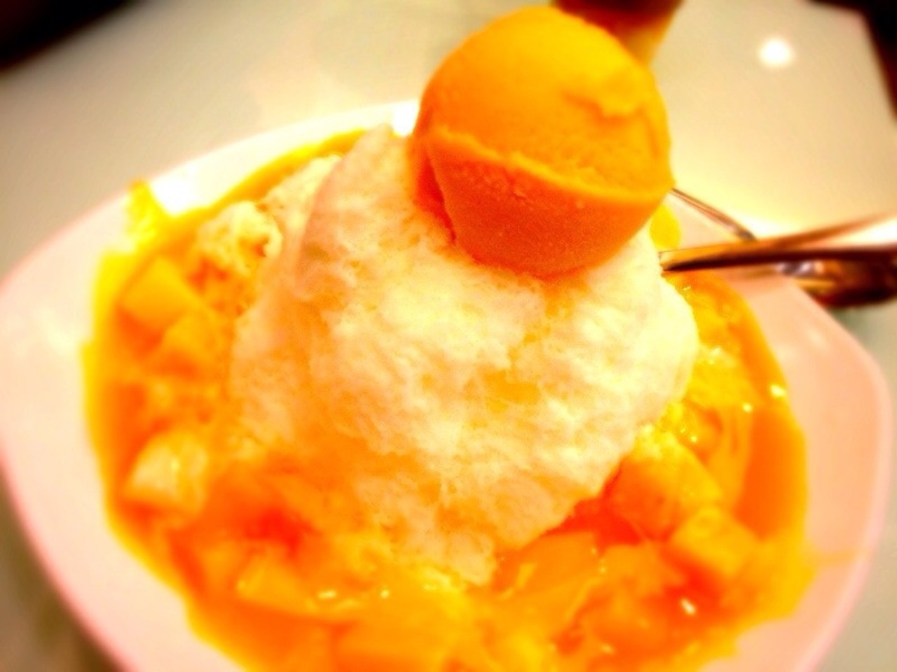 かき氷はふわっふわで、マンゴーがたくさんかけられていて美味しかったです。