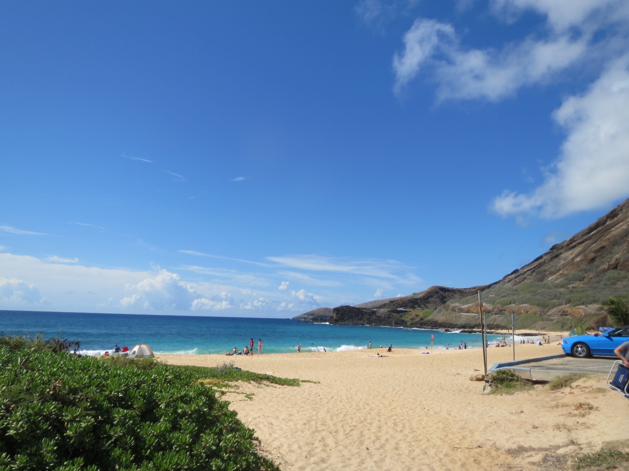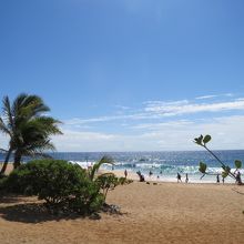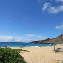 ハナウマ湾からチャリで20~30分くらいでサンディービーチに着きました。あまり大きなビーチではなくロコが多い印象です。ビーチのセンター付近の波は高く、ボディーボードを楽しんでいるロコの若者たちがいましたよ。