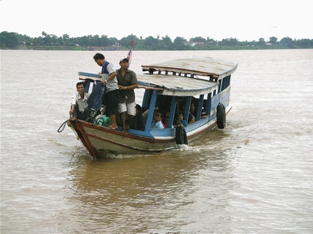 ひょいと乗って簡単にお隣の国=タイに行けるので非常に便利だ。ボート代15000キップ(約150円)。