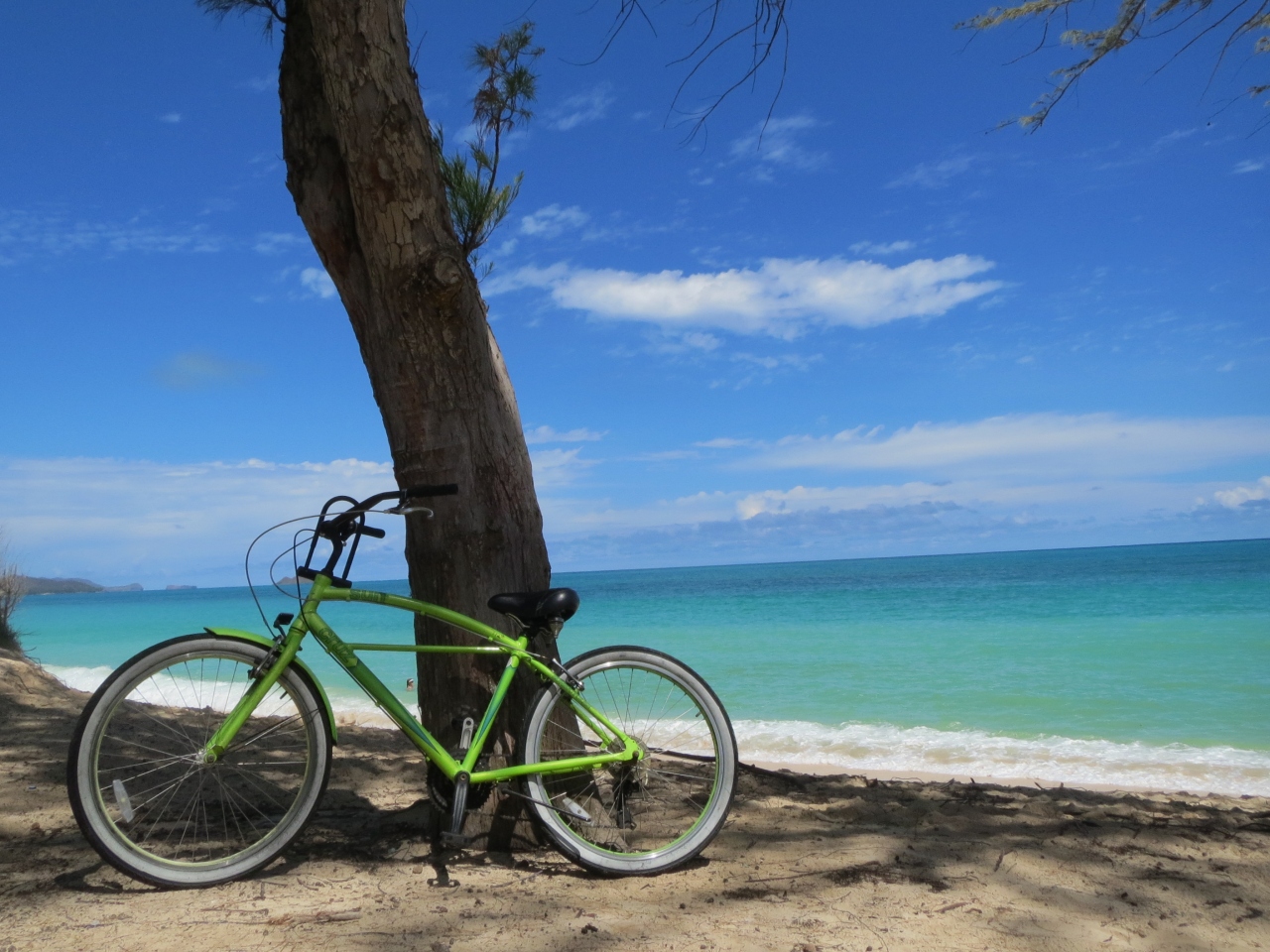 マカプウからのんびりチャリで約1時間ワイマナロビーチに到着!