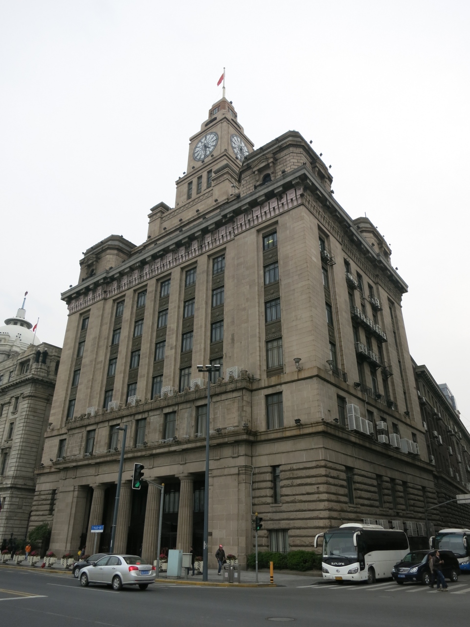 上海 外灘に歴史的建築物の一つ。上海浦東発展銀行の右側に建つ時計台が特徴的な1927年竣工の建物で銀座にある和光の様な雰囲気です。時計台は15分毎になります。外国船への徴税事務を行う税関として使われていたそうです。