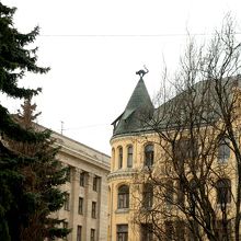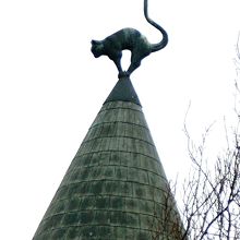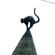 リガ旧市内にある建物の尖塔に猫が一匹!何で、こんなところに?