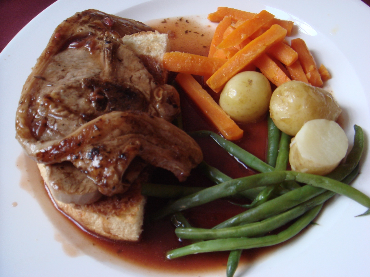 歴史あるパンで有名なので、どこで出てくるかな~と楽しみにしていたら、最初にスープと一緒にパンも出てきたので、ふわふわでおいしいパンが味わえましたが、なんと!メインの肉料理のお肉の下にもパンがあり、びっくりしました!笑