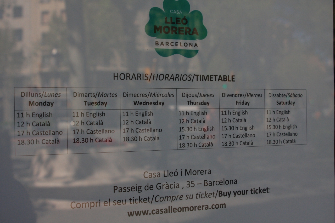 カタルニアを代表する3大建築家の一人であるドゥメナク・ムンタネーの作によるリャオー・ムレラ邸が2014年、1月から一般公開されるようになった(期間限定か、永久かは知らないが)彼の作品はバルセロナ市内では公共の建物が多いが、一般家庭の家を見れるのは珍しいかも。 残念ながら、家具などは置かれていないけれど(写真のみ)その当時のブルジョア層の家の様子を見てみるのも面白いかも。ガイドツアーは、前もってネットで申し込み、予約確認書を持参すること。(変更、返金不可)料金は15E。 月曜から土曜日の11:00から18:30まで。 残念ながら今のところ日本語はなく、カタラン語、カスティリア語、そして英語のみ。1時間から、1時間15分の見学となる。 予約時間の10分前には家の前に到着されておきたい。この家の隣はロエべになる