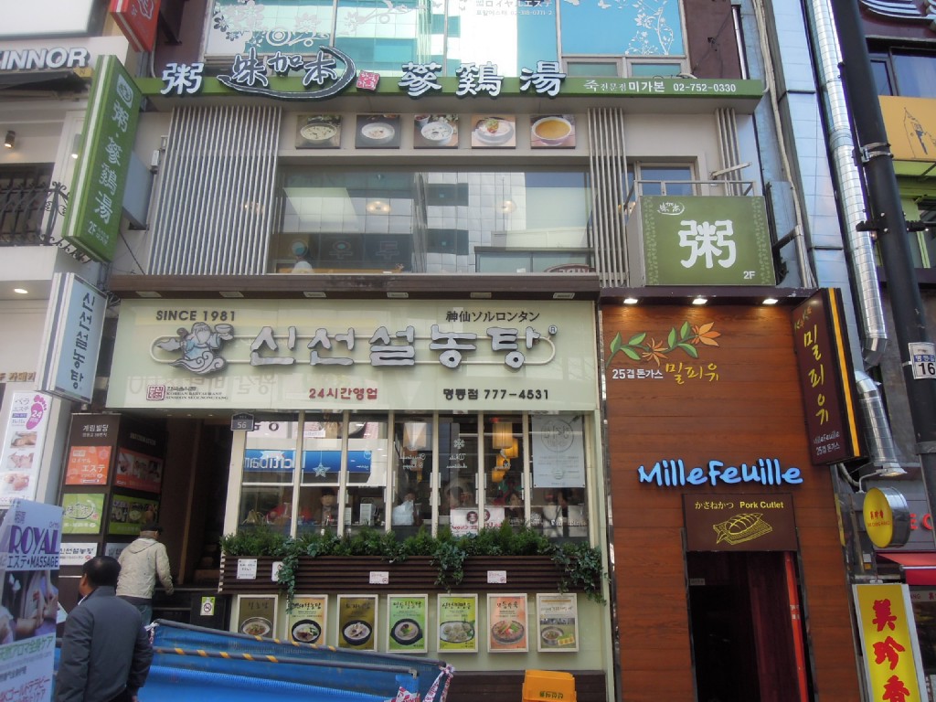 明洞散策時にランチで利用しました。出発前にソウルナビで調べていたら10%割引クーポンがあったので印刷してもっていきました。店内は日本のファミレス仕様で明るく清潔です。日本語も少し通じるようで、お粥はしっかりと味がついていてキムチに飽きた胃にやさしくおいしくいただきました。