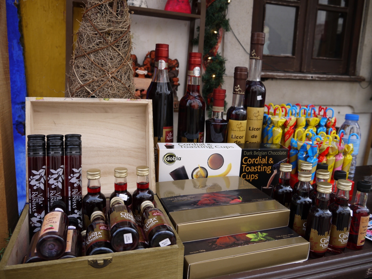通りの両側には可愛らしいお土産屋さんやオビドス名産のさくらんぼのお酒ジンジーニャを売っているお店がいっぱいあります。