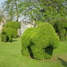 バンコク発のアユタヤ観光のツアーで行きました。とても広くて素敵な宮殿なのですが、ツアーで時間が限られていたので、あまりゆっくり見学することはできませんでした。カートを借りることもできるようですが、借りずに歩いて回りました。ゾウの形をした植木がとてもかわいいです。