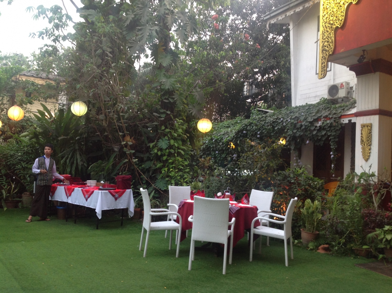 現地駐在員に紹介されて行ったミャンマー料理レストランでしたが、意外に素晴らしかったというのが第一印象。最初屋外は蒸し暑いかな?とためらいましたが、人工芝がご愛嬌の庭で夜空を見上げながら飲むミャンマービールは格別の味。気候も少し甘めのカレーで不快感も感じず、こんなところがヤンゴンにもあるんだと感動さえ覚えました。予約なしで早めの時間に行ったのでよかったのですが、時間を追うにつれ西洋人で混雑してきました。