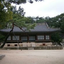 昌慶殿にあります。王様の寝所です。丙子胡乱の際、第16代王の仁祖は南漢山城に避難し、翌年戻ってきてこちらに住んだと言われています。扁額は純祖(スンジョ)の親筆。「宮中残酷史ー花たちの戦争」で何度も出てきた王様の寝殿。