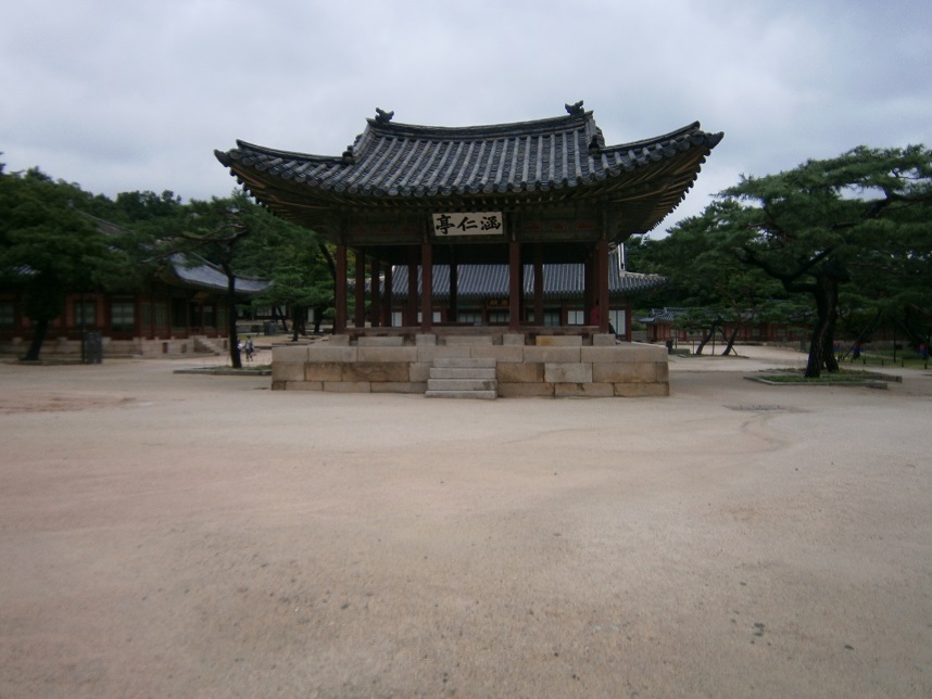 昌慶宮にあります。涵仁亭(ハミンジョン)。大小の接見行事が行われたところ。第21代王の英祖はここを文武科挙で壮元及第(主席合格)した人たちと接見する場として使用した、といわれています。広い庭では各種の公演が開かれたとのこと。仁粋大妃が王室の女人たちのためにここで演戯を施したそう。涵仁亭の内部には4個の扁額に「帰去来辞」を詠んだ詩人陶淵明(中国東晋・宋代の詩人)の詩が掛けられています。五言絶句の形式で詠まれたこの詩は四季の妙味を詠んだもので、方向に合わせ季節ごとに掛けられています。ちなみに詩の内容は「春水満四沢(東−春の水はすべての池に満ち)、夏雲多奇峰(南−夏の雲は奇峰に多く)、秋月揚明輝(西−秋の月は空高く明るく輝き)、冬嶺秀孤松(北−冬の嶺に生うる松は美しい)」。