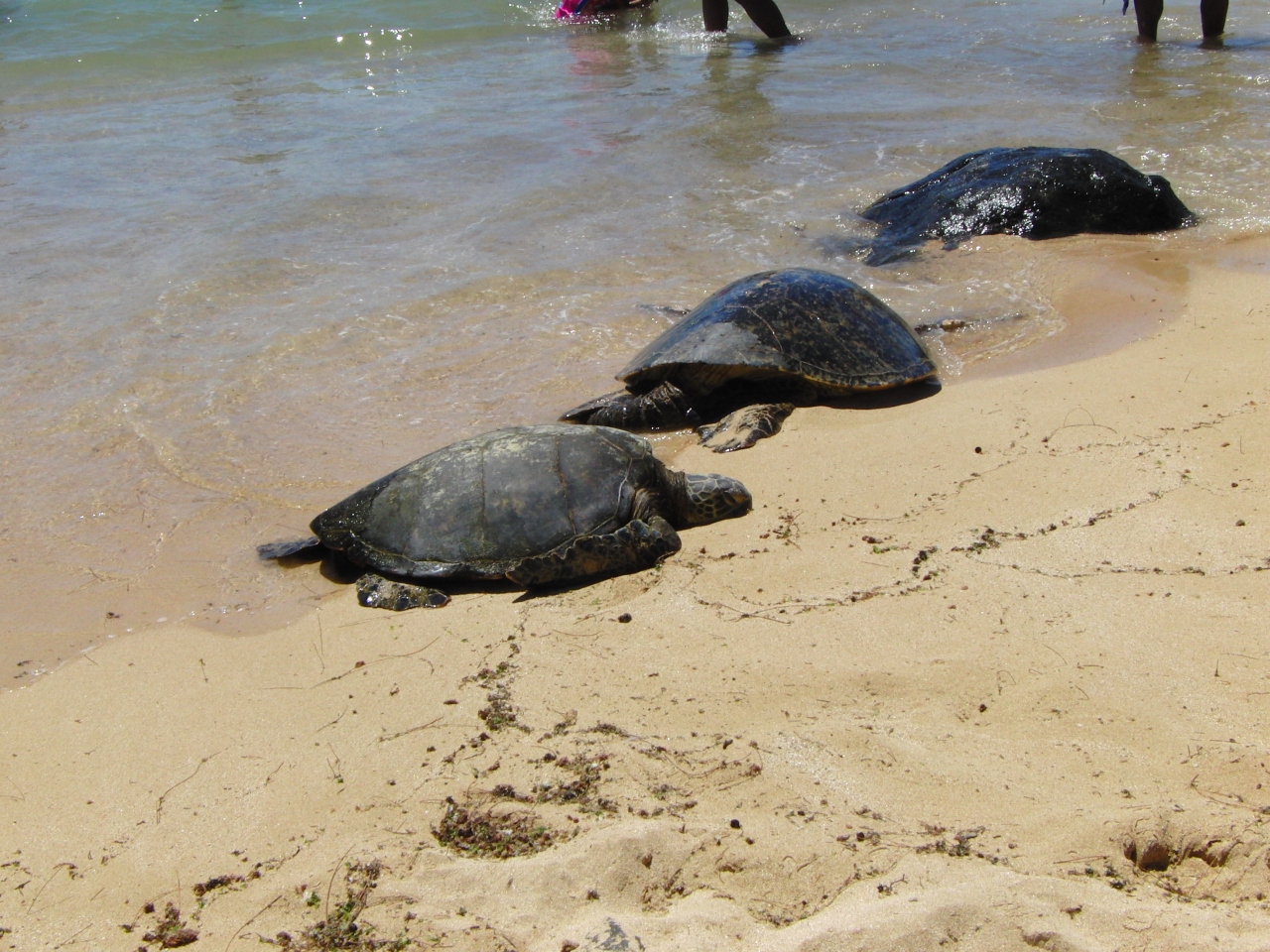 ワイキキよりバスで30分ほど離れているだけでとても静かなところです。入場に関して簡単なレク終了後いよいよ浜辺に行くことになります。浮き輪とシュノーケルをつけて(近場のところは大人では十分足が立ちます)海に入ると小さな魚から70から80?のきれいな魚がたくさん手の届く目の前をゆっくりと泳いでいます。感激と興奮で時間のたつのも忘れてしまいそうになりました。
