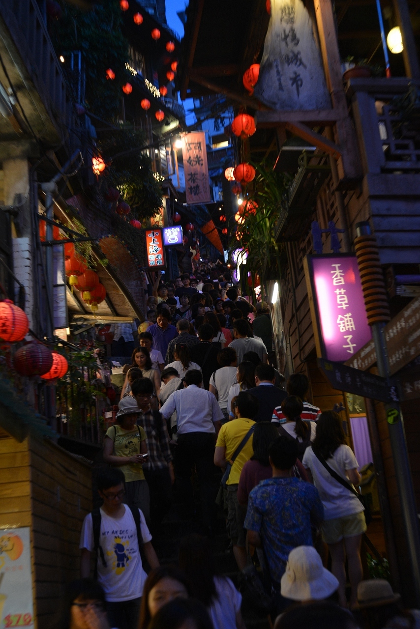 いつ行っても、時間に関係なく人も多く、日本人も多い。特に夕方からの提灯が点灯する時間帯は「千と千尋の神隠し」のモデルとなったと言われている場所は写真撮影で大変な賑わいです。九份のお勧めは街並み、景色、名物な食べ物で「芋圓ぜんざい」、「猪ソーセージ」はお試しあれ。写真撮影も終わったら今度は台北に戻る人でバス停は大混雑。1時間以上待つこと当たり前らしい。ここで私は台北に戻るのではなく、九份の民宿に宿泊するか、混雑していない逆の基隆に行き、海鮮夜市を楽しみ宿泊、翌日は平溪線周辺観光ってプランをお勧めします。